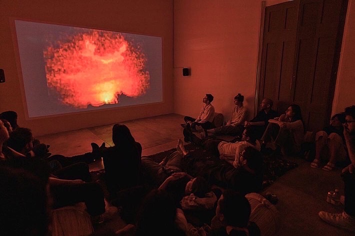 Together with the screening, Memory War featured a multi-lingual reading room presenting materials contributed by the artists and curator that expand on concepts of memory, erasure, and forms of resistance. The reading room and screening are accompanied by an installation organized by Mexico City-based writer Su Wu, featuring bronze “Memoria” stools by design collective EWE Studio, cast from a collection of vernacular objects, and a rug of fallen jacaranda petals designed by Casa Ahorita for txt.ure, a design research project founded by Regina Pozo, former director of Archivo Diseñó y Arquitectura.